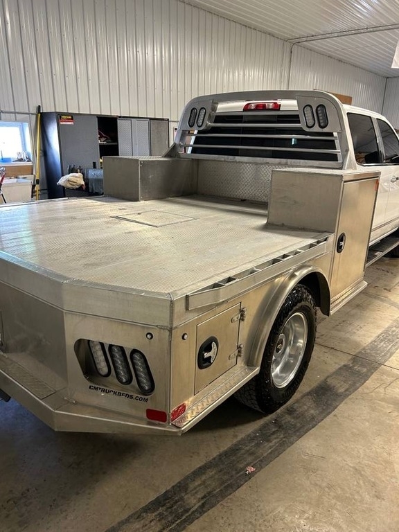 utility bed equipped with a fifth-wheel ball, making it perfect for heavy-duty