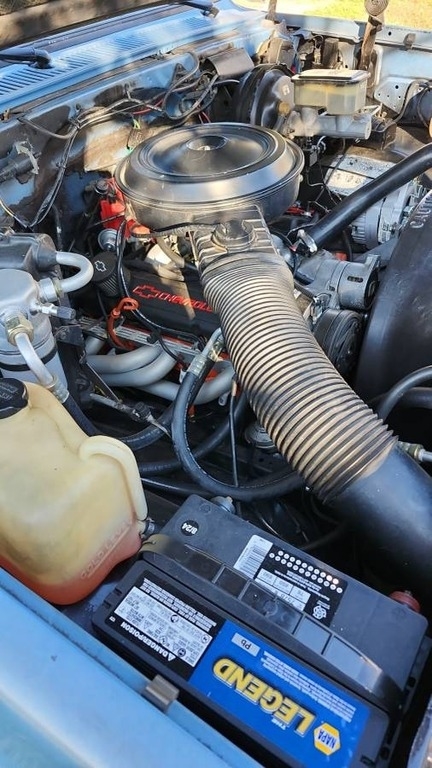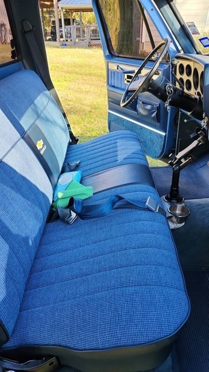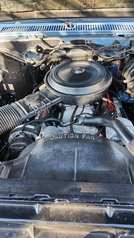 This Chevy is powered by a 350 V8 engine paired with a 4-speed automatic transmission. The odometer reads 125,000 miles with 35,000 on the new engine and is shown with a blue exterior and a blue interior. This vehicle has been non-smoking, garage-kept, and well-maintained.