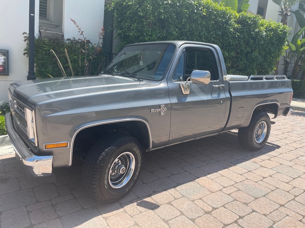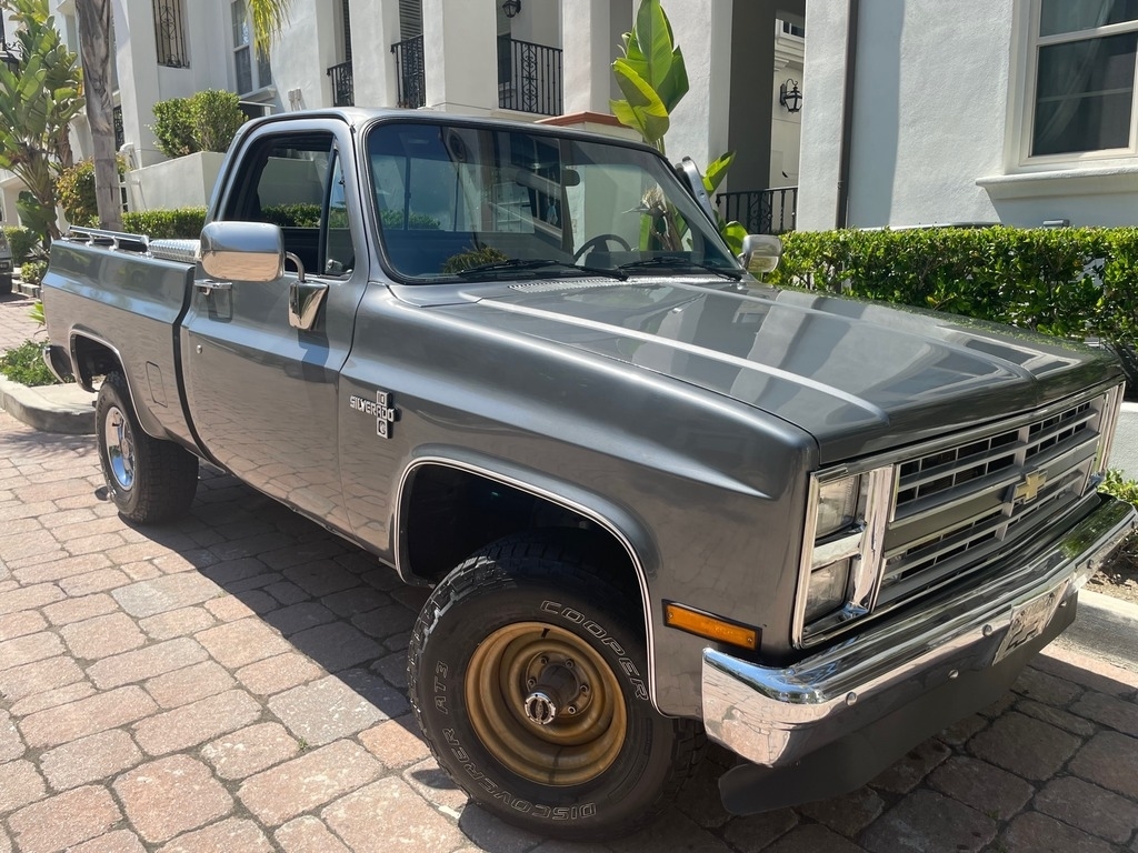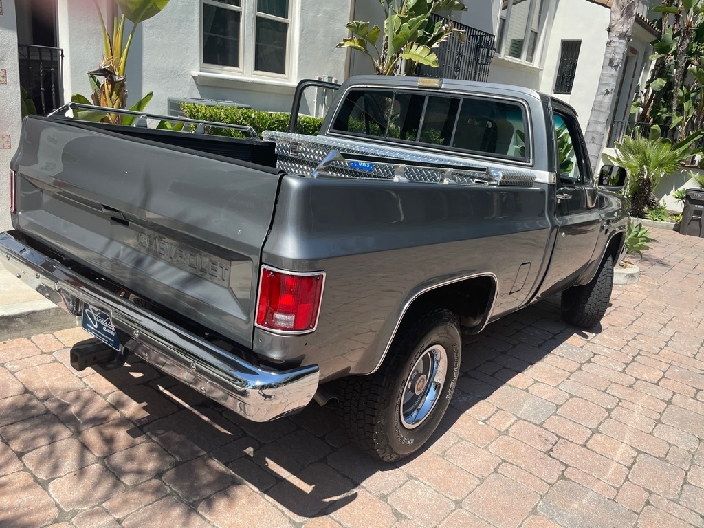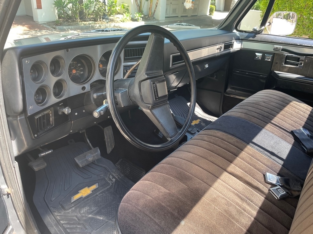 This 1986 Chevrolet K10 is powered by a 350 V8 engine and a 4-spd automatic transmission with 33,493 miles. Proudly shown with gray exterior paint with black interior.