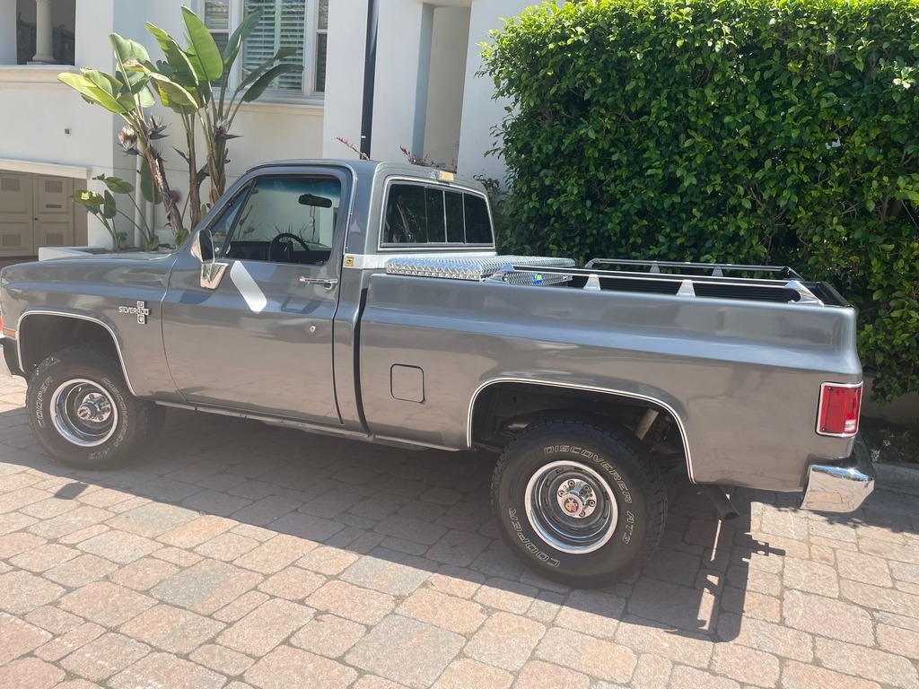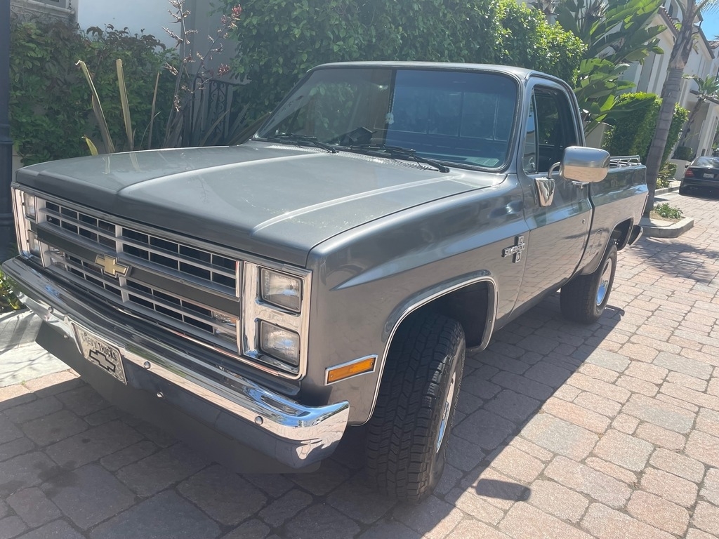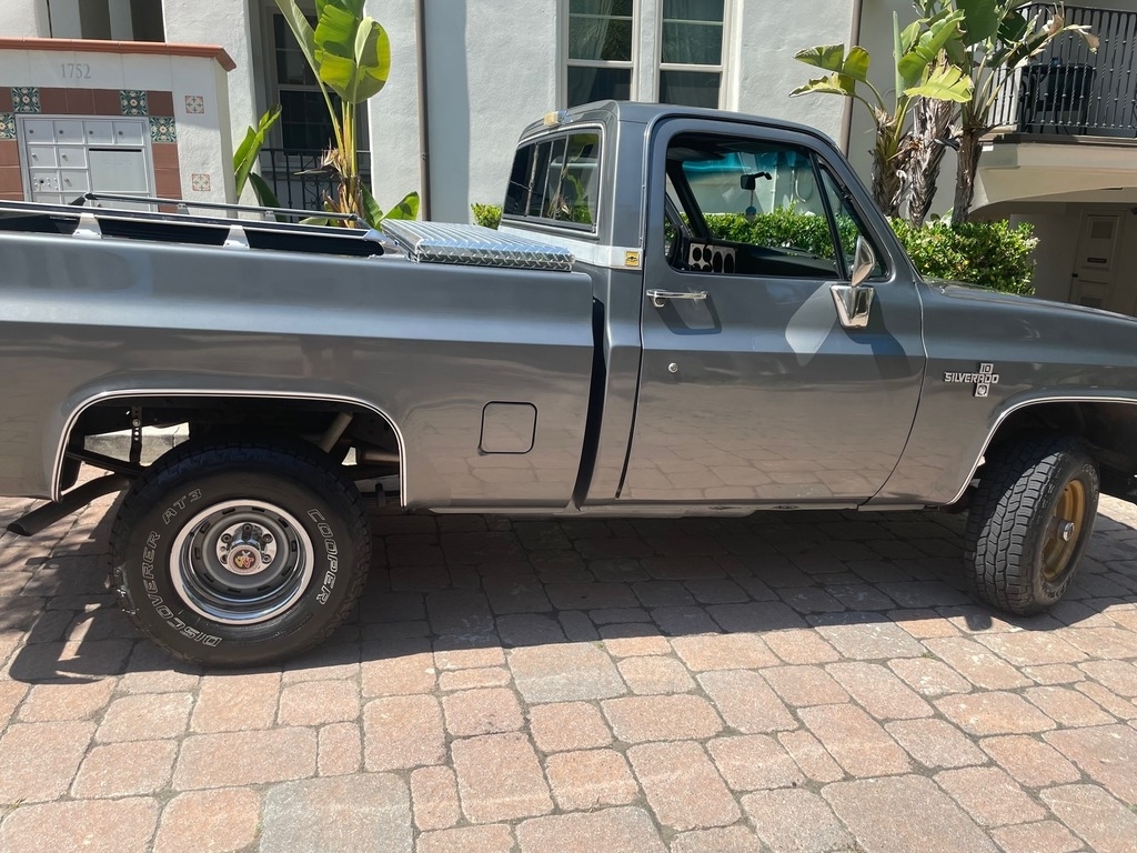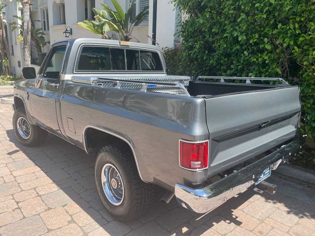 This 1986 Chevrolet K10 is powered by a 350 V8 engine and a 4-spd automatic transmission with 33,493 miles. Proudly shown with gray exterior paint with black interior.