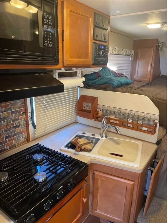 Gas Cooktop, Microwave, Double Sink w/ Backsplash