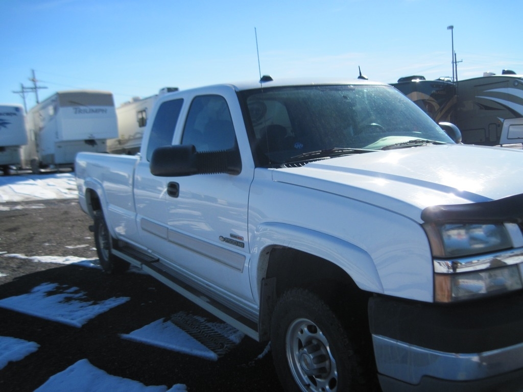This 2004 Chevrolet Silverado 2500HD is shown in White with a Gray interior. It is powered by a 6.6L V8 Diesel engine and is paired with an Allison Automatic transmission. There is 88,362 miles on this amazingly maintained Silverado. This is a non-smoking vehicle that has had no pets inside.
