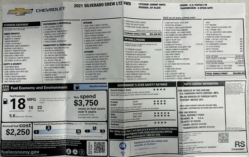 2021 Chevrolet Silverado 1500 LTZ 4X4 Pick Up for Sale in Murray, UT 84107
