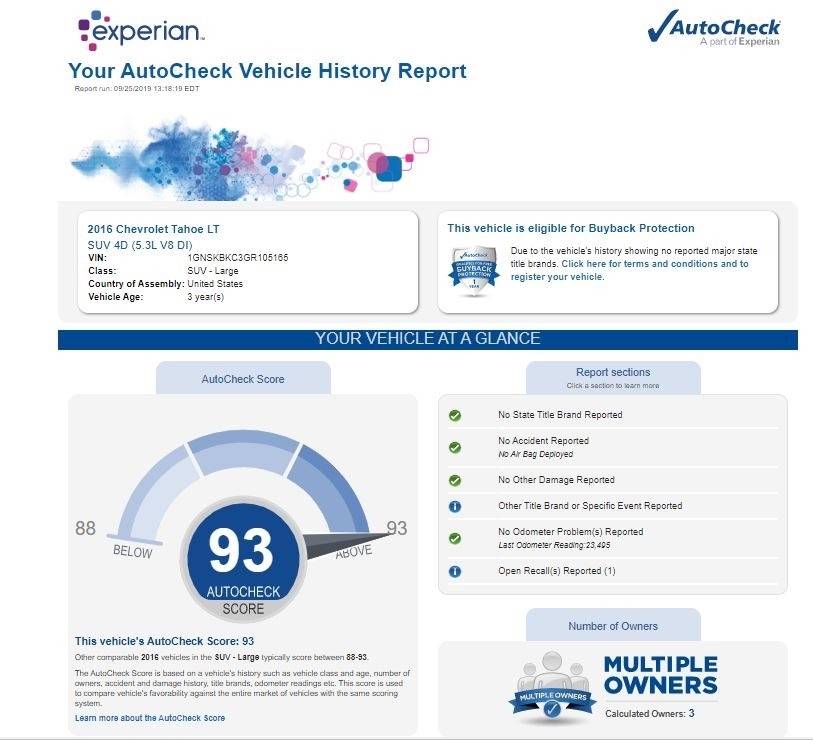 This 2016 Chevy Tahoe LT is Powered by a 5.2 L V8 Gas Engine with a 6-Speed Automatic Transmission. This Tahoe is Shown in a Silver Exterior and a Black Interior. It has 65,400 Original Miles, and has been Garage Kept and is Non-Smoking/Non-Pet. Excellent Condition, Fully Loaded with ALL Options!!