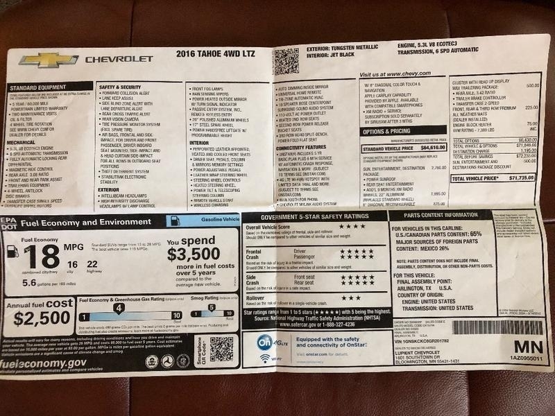 2016 Chevrolet Tahoe LTZ For Sale in Fairibault, MN 55021