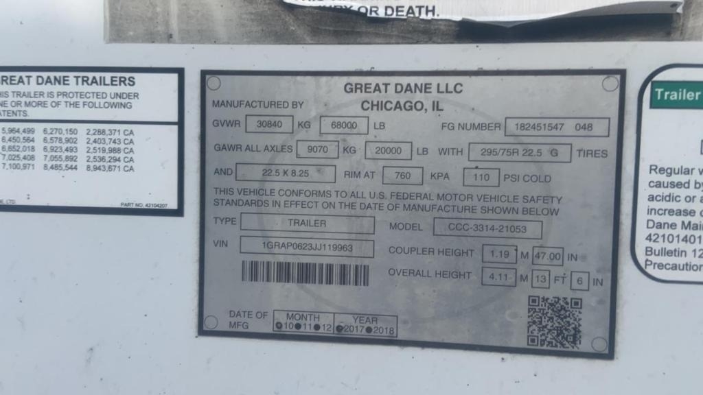 2018 Great Dane Dry Van Food Grade Plated Trailer for Sale in Laredo, TX 78040