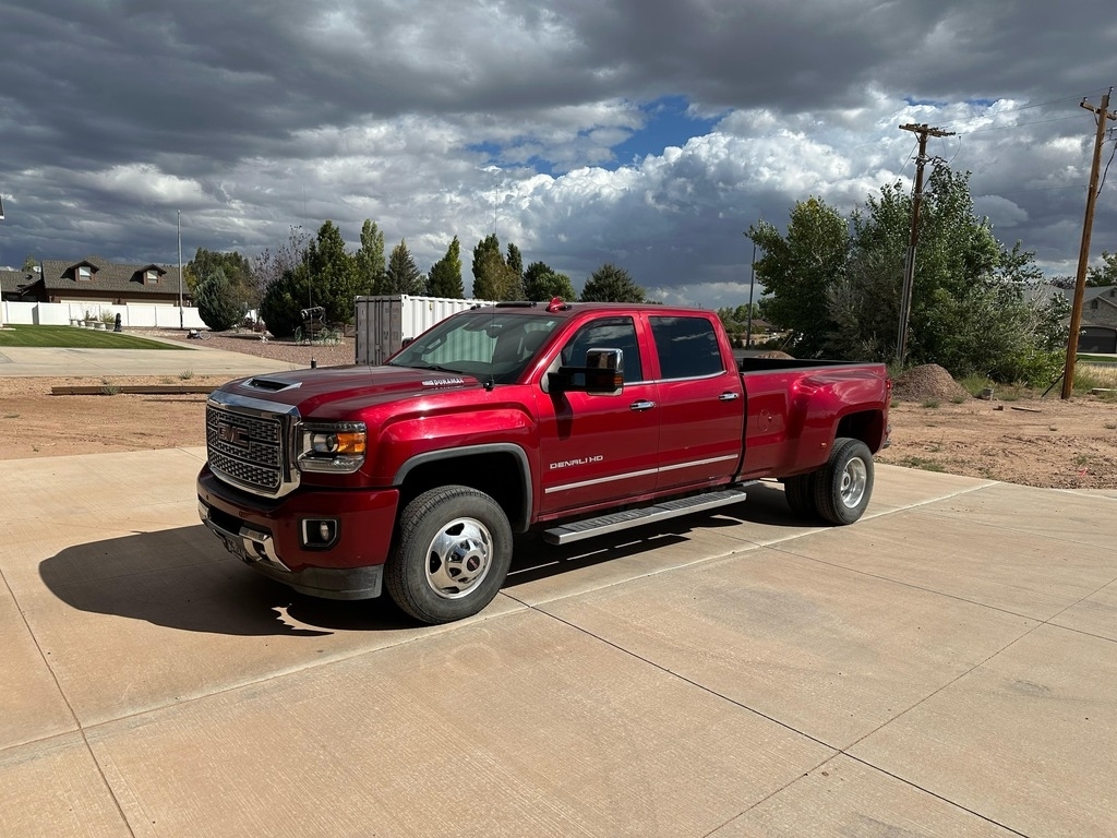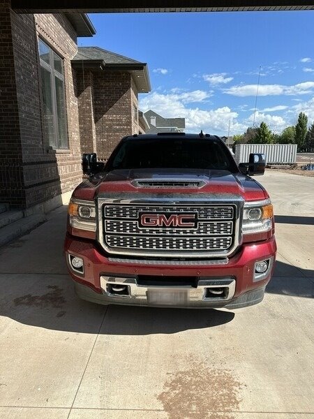 GMC has a 6.6L V8 Diesel engine, paired with an automatic transmission, and has