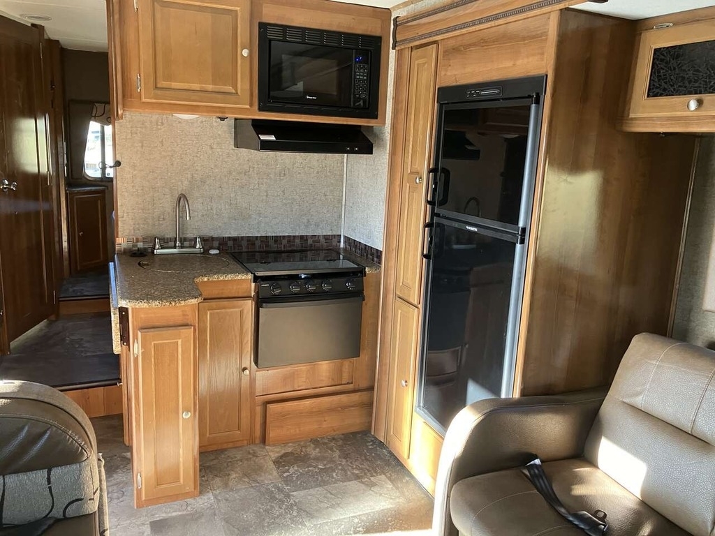 This Coachmen is powered by a 6.0L V8 engine and a 5-speed automatic transmission with 20,000 miles. The overall length is 27.42 feet and it comes equipped with 2 power retractable slide-outs, 1 power retractable awning, 1 A/C unit, a generator, and plenty of room to sleep 8. This unit has been well-maintained.
