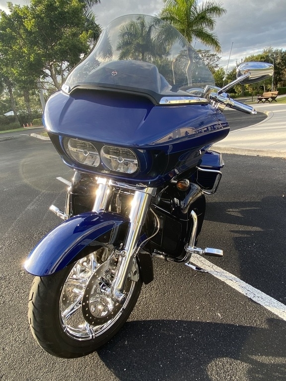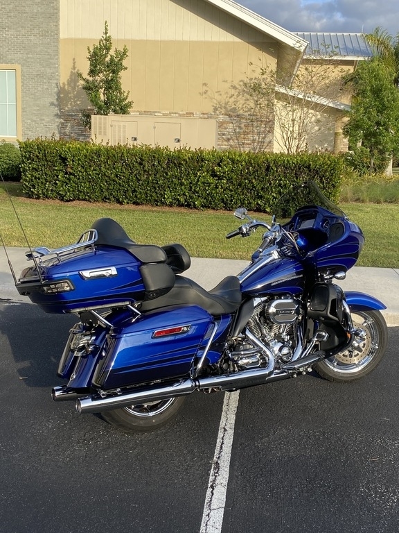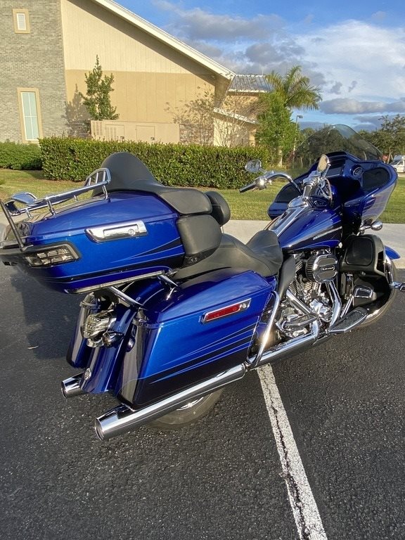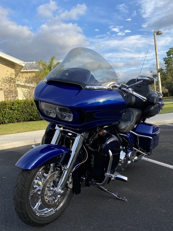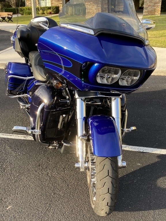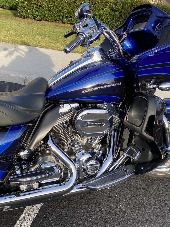 This 2015 CVO Road Glide Ultra Limited is offered for sale well maintained and is ready to ride. This Bike has a V2, four stroke Engine with 96.6hp, Twin-Cooled & Twin-Cam 110. It is shown in Abyss Blue/Crushed Sapphire and has been Stored in a climate-controlled Garage.