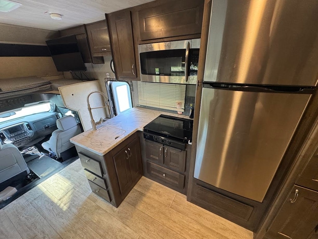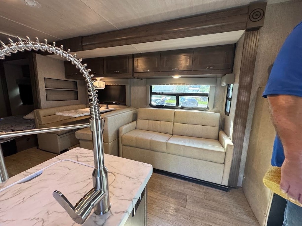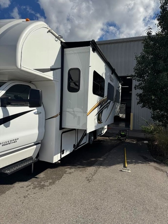 feet and it comes equipped with 1 power retractable slide-out, 1 power