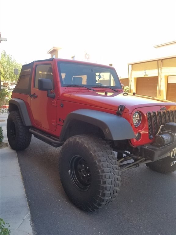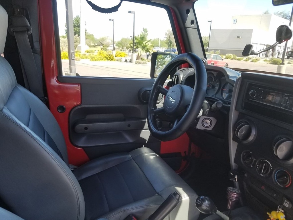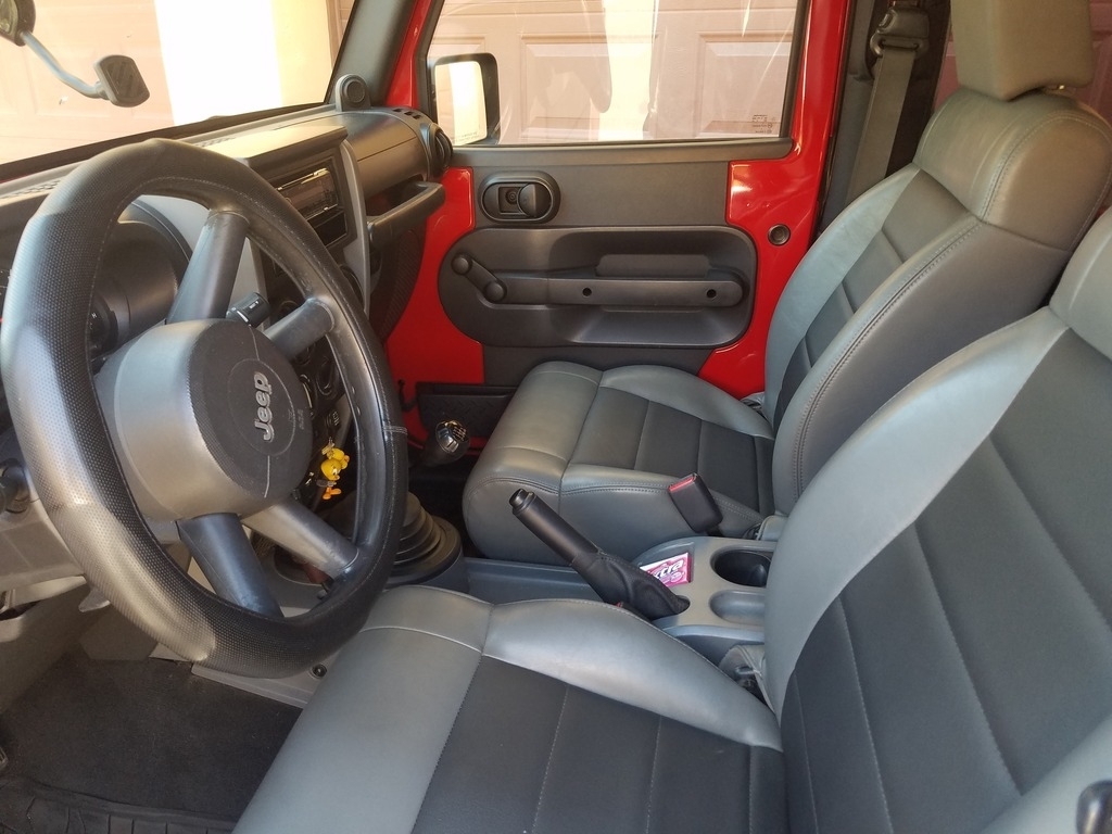 This Jeep is powered by a 3.8L, 6-cylinder gas engine, paired with a 6-speed manual transmission. There is only 72,000 miles on this car. This beauty is shown in Red with a black top, has been garage kept and has never been driven in rain or snow! Also, this vehicle has a working AM/FM radio and has leather seats.