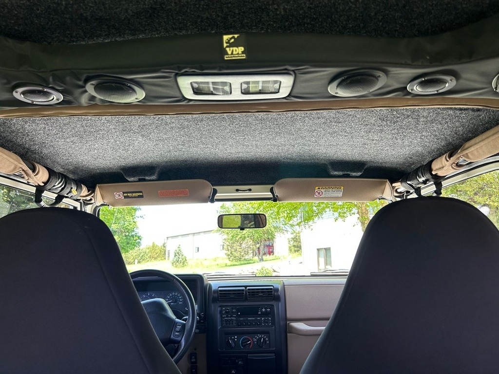 35,430 Miles. This Sahara is Shown with a Stone White Exterior and Camel/Dk Green