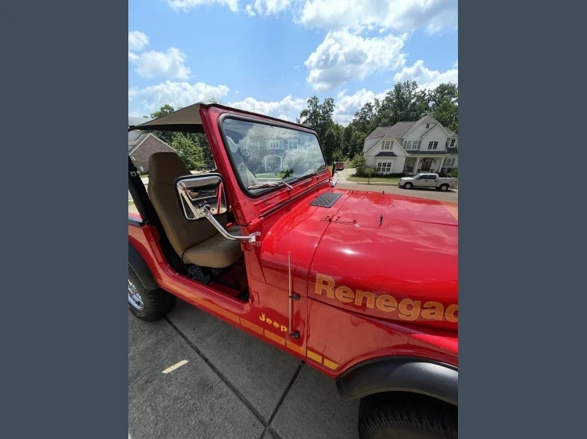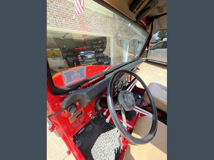 This 1986 Jeep CJ7 with matching numbers is powered by a 4.2 L 112 hp engine and a 5-spd manual transmission with 146,000 original miles. Proudly shown with red exterior paint with tan vinyl interior.