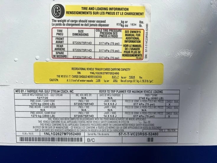 pressure regulator, solar panel ready, LP tanks are full, weight distribution