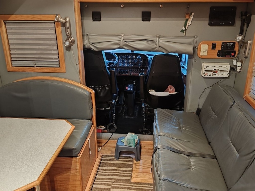 “Custom-built 2000 Peterbilt Toter Home, a top-of-the-line RV that combines luxury and performance. This exceptional toter home is equipped with a powerful Caterpillar engine and an 18-speed auto-shift Eaton transmission, providing smooth and reliable driving with just 226,000 miles on the odometer. It features an Alumi-Bunk sleeper and a spacious interior with one slide-out, maximizing living space. The RV includes two air conditioning units and an Onan generator, ensuring comfort and convenience in any environment. The sleeping arrangements are versatile, accommodating up to 6 people with an overhead bunk, a booth dinette that converts into a bed, and a fold-out couch. Additionally, it has an air-ride 32K RV 5th wheel hitch for enhanced towing stability. This custom Peterbilt Toter Home is designed for those who want both style and functionality on the road. Although well-maintained, the toter home could benefit from some TLC, including new rear tires and a few minor cosmetic updates.”