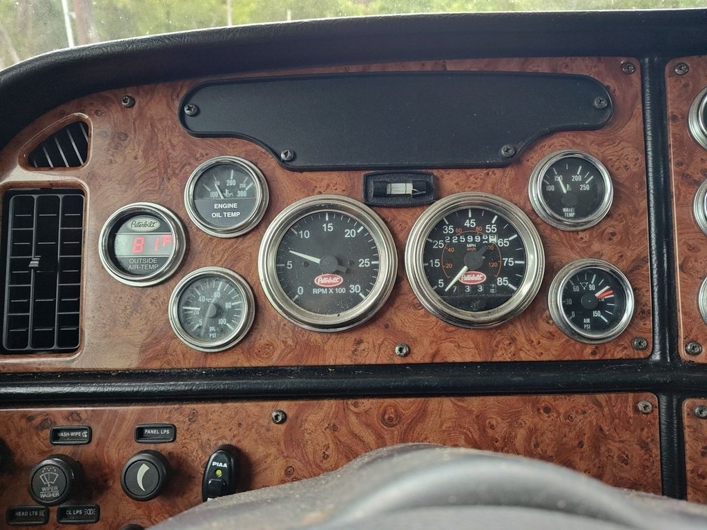 This custom Peterbilt toter home is powered by a Caterpillar diesel engine and an 18-speed auto-shift transmission with 226,000 miles. The overall length is 40 feet and it comes equipped with 1 power retractable slide-out, 1 power retractable awning, 2 A/C units, a generator, and plenty of room to sleep 6. This unit has been well-maintained.