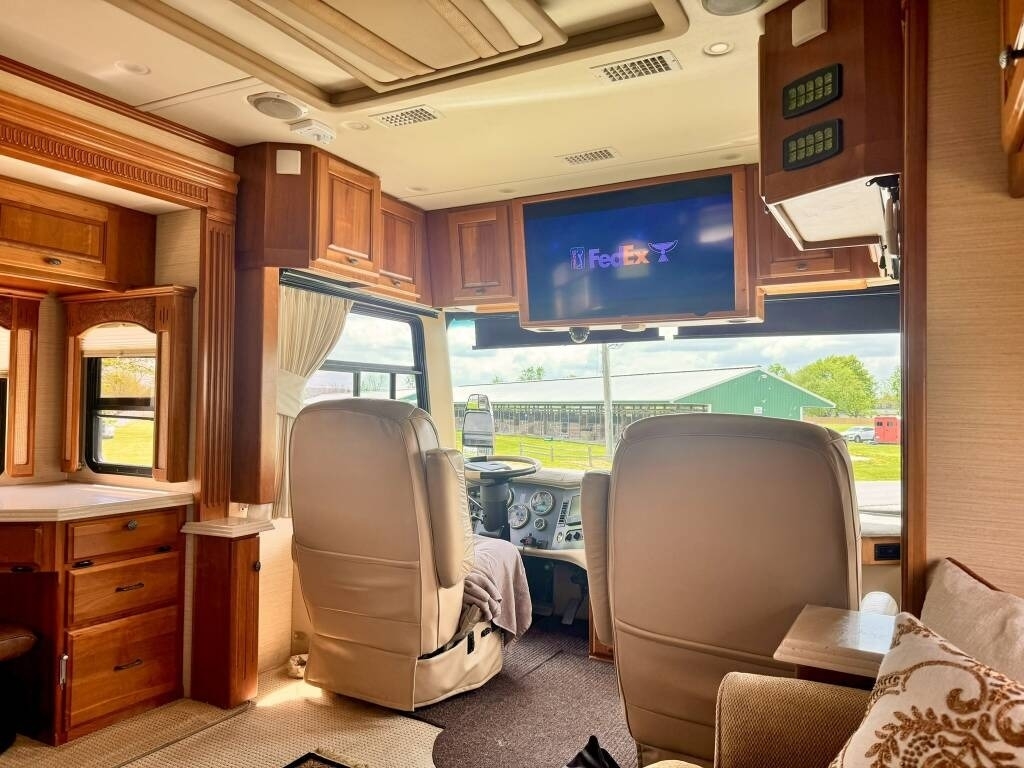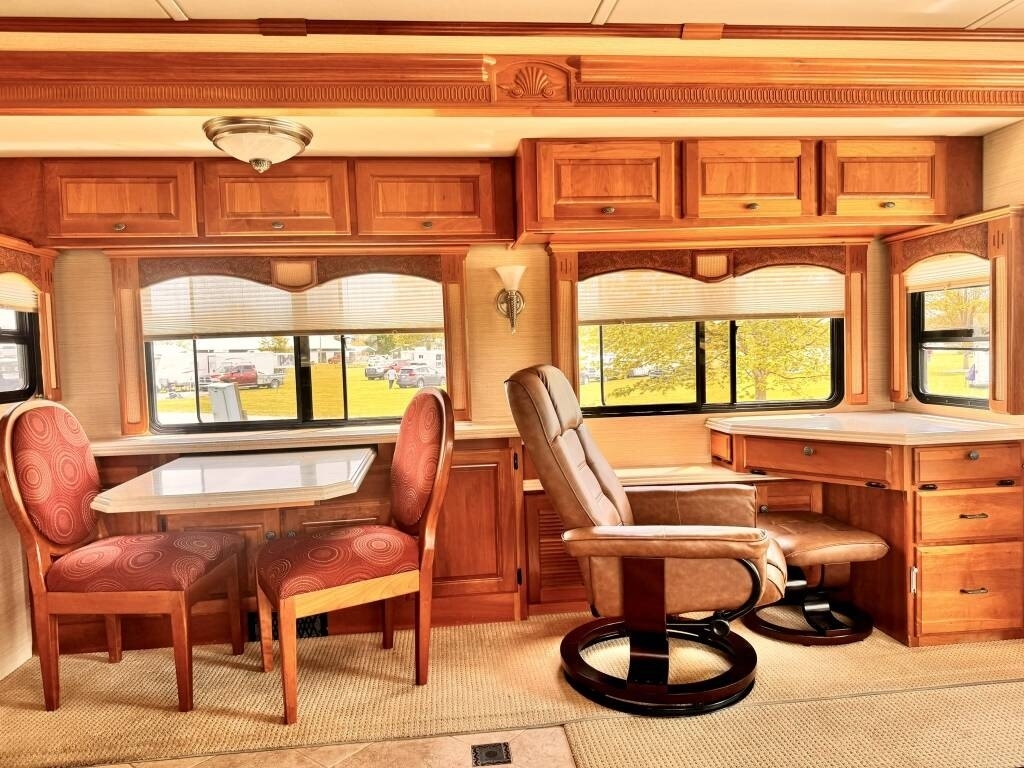 This Monaco is powered by a 400hp Cummins ISL engine and a 6-speed automatic transmission with 109,000 miles. The overall length is 42 feet and it comes equipped with 4 power retractable slide-outs with awnings, 3 A/C units, a generator, and plenty of room to sleep 4. This unit has been well-maintained.
