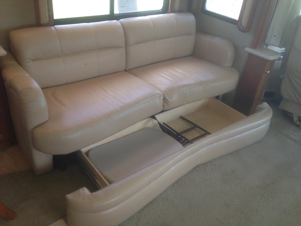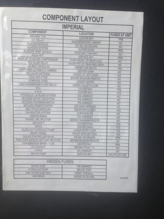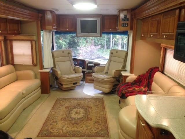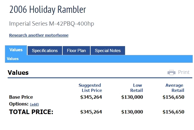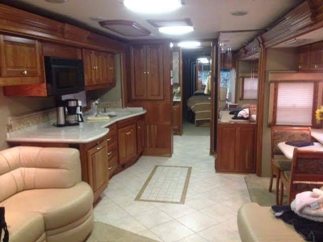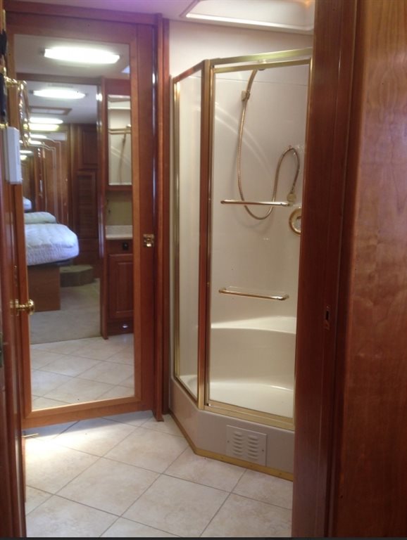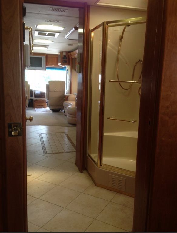 400HP Cummins Engine, Very large / heated / adjustable driver seat, Very large / adjustable reclining passenger seat. Radiant floor heating – galley / bath, Solid medium cherry wood cabinets, Residential size refrigerator, Travel information GPS navigation system, Universal remote, In-motion satellite system, Washer / dryer combo, Solid surface vanity sinks, Dual directional slide tray (1) in basement storage, 10K Onan generator, 3M nose coat, Exhaust brake, Alternator: 160 amps , Optional Hydronic engine block preheat , Transmission: Allison 3000 MH - Six speed automatic w/ 2 overdrive gears, Keypad electronic shifter w/ digital display , Holland / Neway independent front suspension – full air suspension system, Full air brakes with ABS and , automatic slack adjusters, Automatic Traction Control, Radar cruise control system, Aluminum alloy wheels, Inner dual steel wheels , Fuel capacity: 135 gallons (dual fuel fills, driver and passenger sides) One-piece molded fiberglass roof cap Exterior riding height: 12’ 10” (including roof air) , Finished interior height: 85” , Sound and vibration dampening material under floor deck , 6-way power operated driver and passenger seats Burlwood dash panels, Wrap-around windshield with shade band , Electronic power sun visors, Optional concealable color rear-view monitor , 18” SmartWheel multiplexed steering wheel wrapped in leather , Padded vinyl ceiling , Intellitec multiplex zoned switching, system, 32” remote-control color stereo TV , VCR with remote control, home theater system with DVD, Remote operational switching for front and rear TV, VCR, and DVD, Power step slide cover ,Microwave / convection oven with power hood, Recessed 2-burner electronic ignition gas cooktop with solid surface cover, Tile/Carpet flooring, Electric china toilet, Thermostatically-controlled variable speed fan w/ rain sensor, insulated cover and dome stop switch, Insulated skylight, glass shower enclosure, two 13,500 BTU low profile roof air conditioners with heat pumps, Onan 10 kW “quiet” liquid-cooled diesel generator with remote start / stop w/ auto low-voltage gen. start on roll out, 2000 watt inverter / converter, Heated and insulated fiberglass plumbing bay, Black water tank flush system, Water filtration system, 104 gallons fresh water , 43 gallons black water, 66 gallons gray water, waste water pumping system, 31 gallon LP tank, 135 gallons diesel fuel, Full awning package, 120 volt receptacle, 12 volt receptacle, coaxial cable and phone jack - (storage bay), HWH CAN auto air leveling system • Holiday Rambler fully body exterior paint Tinted windows, Aqua hot heat and hot water system