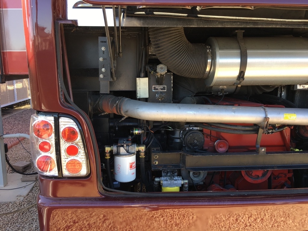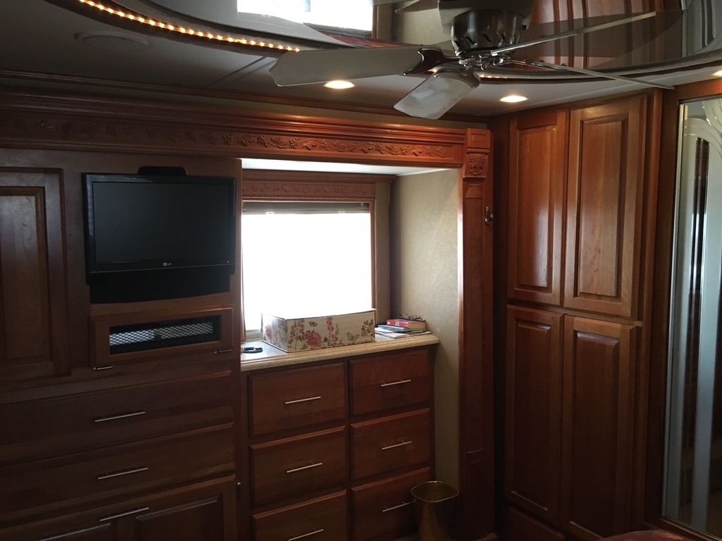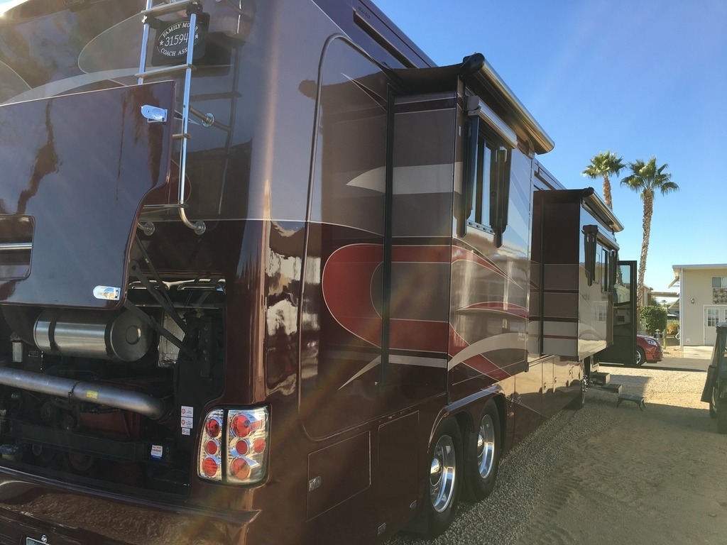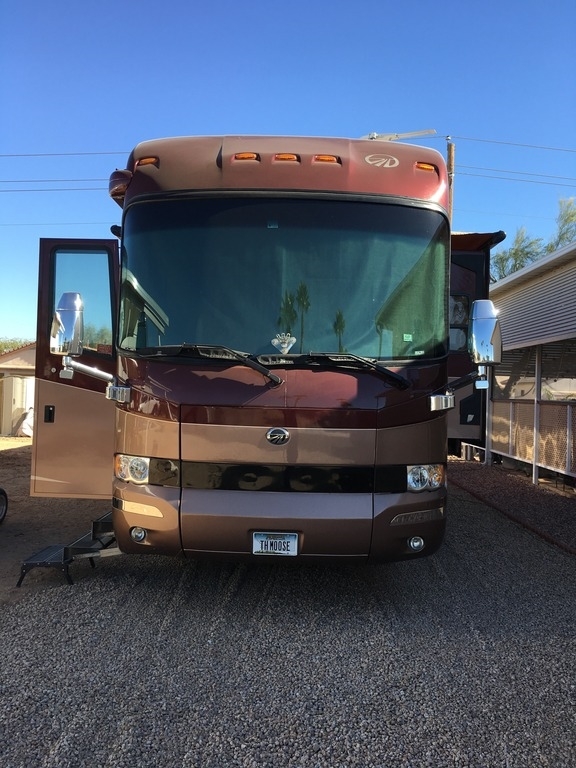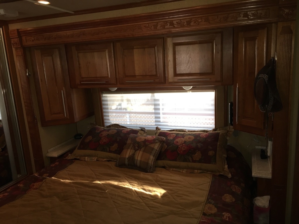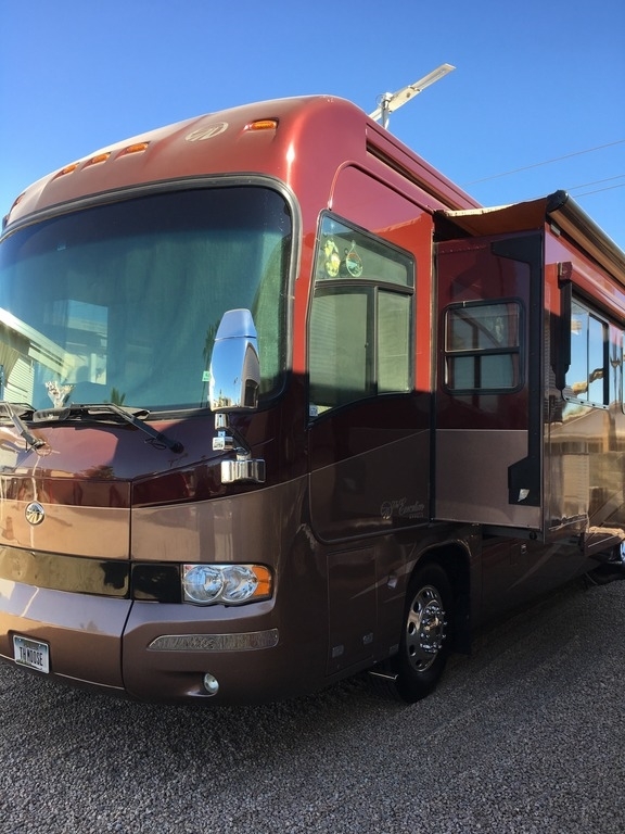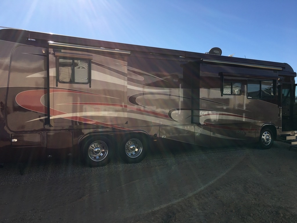 This Monaco comes equipped with a Cummins ISX, 525hp diesel engine paired with an Allison 4000MH 6-Speed World Transmission that has 74,500 miles on it. It is 41-ft in length, has 4 slide outs with awnings, patio and door awnings with LED lighting, 3 A/C units and sleeps 4.