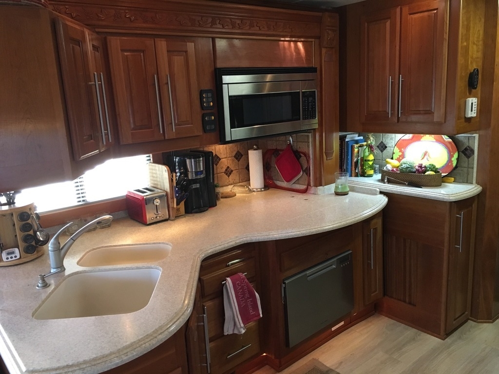 The 2007 Executive style and convenience come together throughout the living area. You’ll enjoy beautiful cabinetry, polished solid surface countertops, dining area with freestanding chairs, and top appliances.