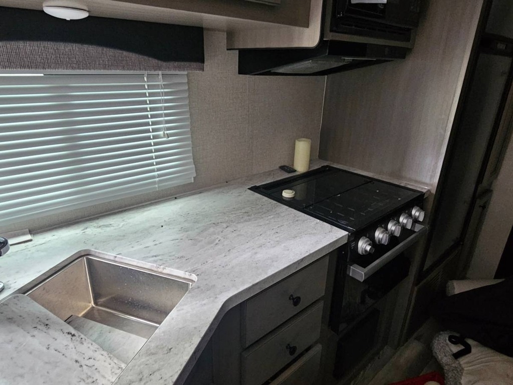 slide-out, 1 power retractable awning, 1 A/C unit, bunk beds, an outdoor