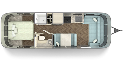 This Airstream has an overall length of 28 feet and comes equipped