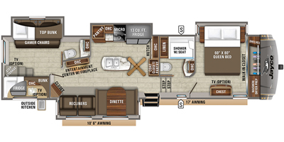 This 2020 Jayco Eagle has an Overall Length of 42 Feet, and Comes Equipped with 4 Slide Outs, 2 Power Awnings, 2 A/C Units, and Plenty of Room to Sleep 6. This Fifth Wheel is Non-Pet/Non-Smoking and has not had any Accidents or Water Damage.