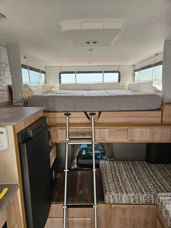 This Northstar has an overall length of 15 feet and comes equipped with a 6’ awning, a solar panel, 1 A/C unit, and plenty of room to sleep 3. This unit has been well-maintained.