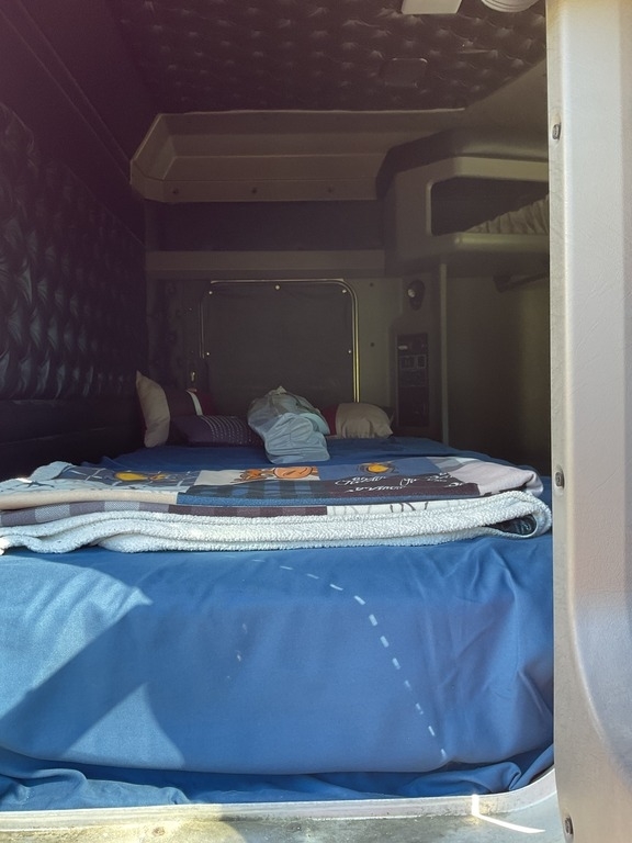 72-inch bunk equipped with a factory-installed Espar heater and refrigerator.