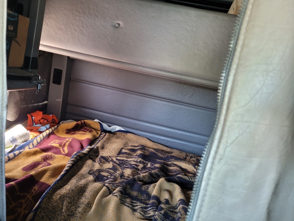 “Ready to hit the road! This long rig is built for extended trips. Set the cruise control, and it maintains speed effortlessly uphill, while the fantastic engine brakes keep downhill speed within a mile or two of your setting without needing to touch the air brakes. The APU ensures you can sleep comfortably wherever you are.”