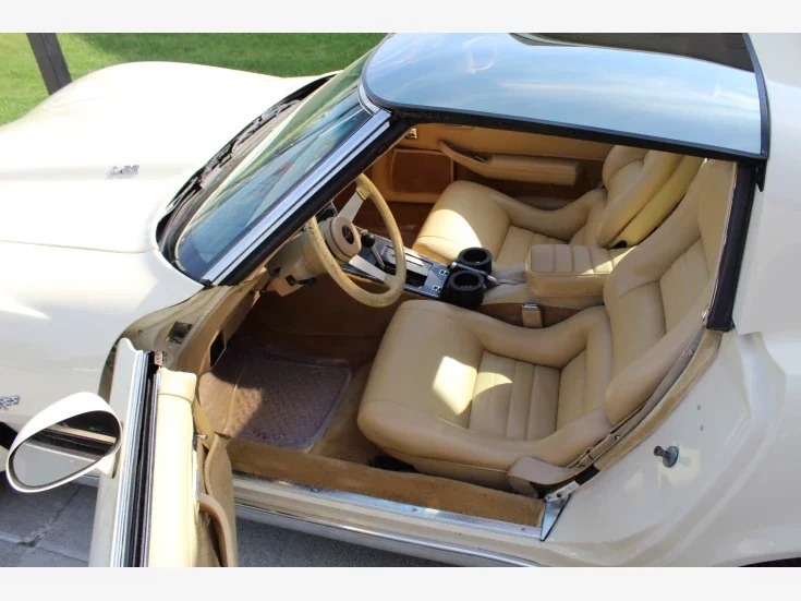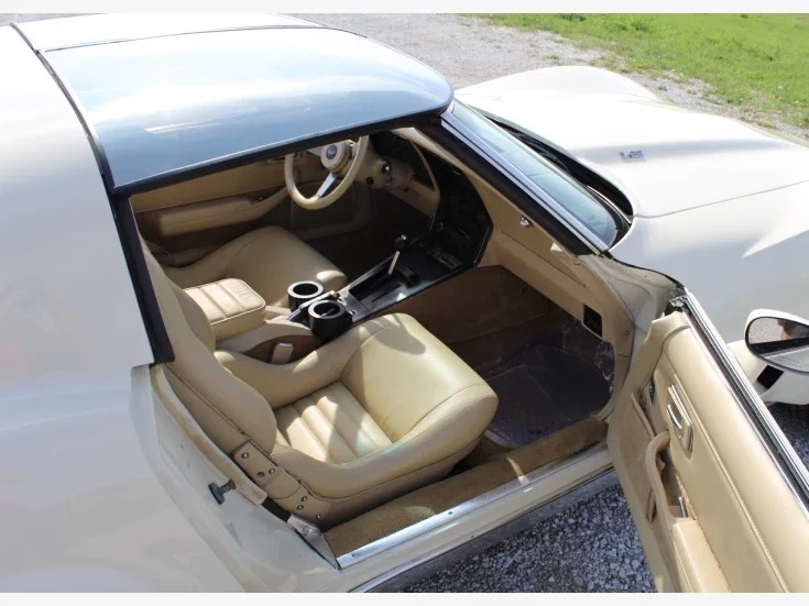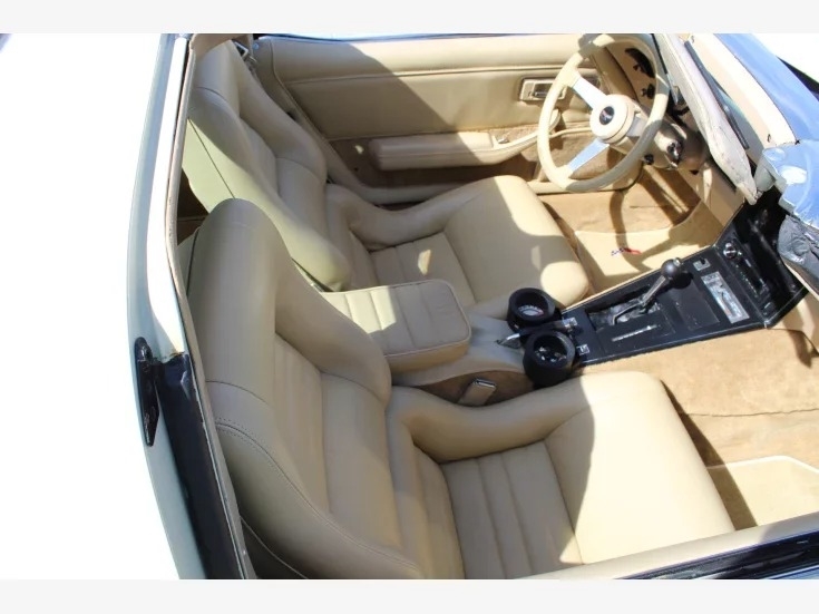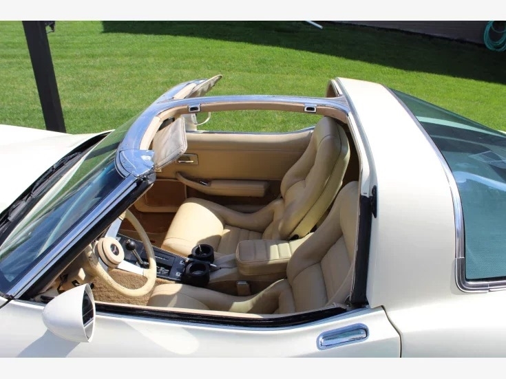 beige T-tops to match the paint. Also comes with Corvette seat covers to keep