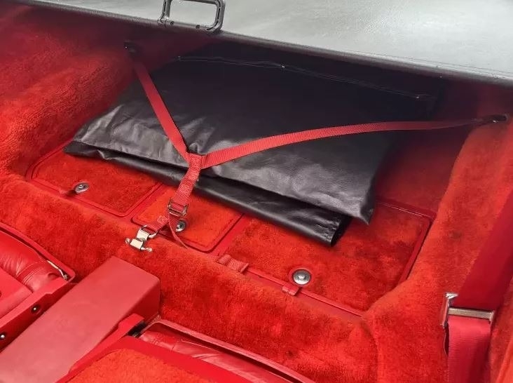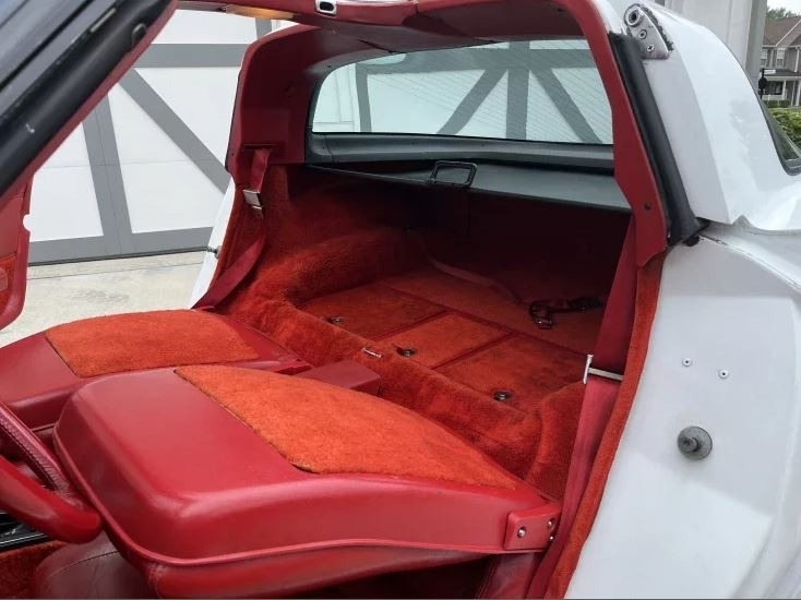 with a white exterior and a torch red leather interior. This car is a beauty