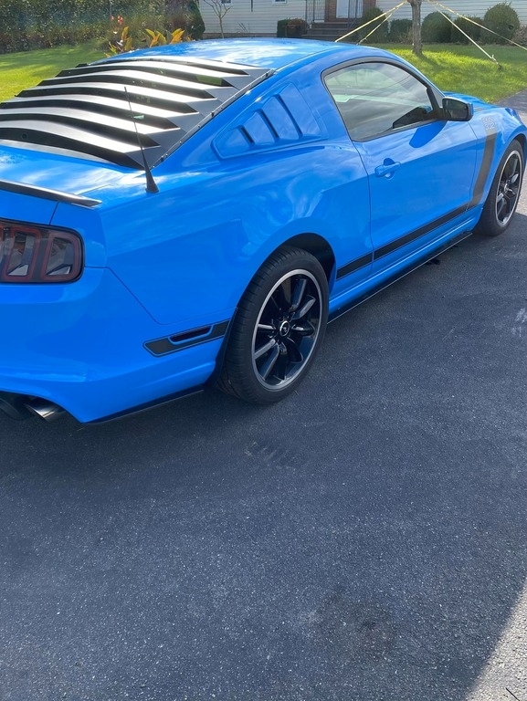 “This one owner 2013 Ford Mustang Boss 302 Coupe is a remarkable blend of modern performance and classic muscle car heritage. With its aggressive stance and iconic styling, this Mustang stands out on the road. Powered by a high-revving 5.0-liter V8 engine, it delivers an exhilarating 444 horsepower, paired with a responsive six-speed manual transmission that makes every drive a thrilling experience. The car features the unique Boss 302 suspension setup, providing exceptional handling and cornering capability, ensuring you can tackle any twisty road with confidence. Inside, the cockpit is driver-focused, featuring sport seats, a leather-wrapped steering wheel, and Boss-specific instrumentation that enhances the racing-inspired feel. The exterior is finished in a striking Grabber Blue, showcasing the distinctive Boss graphics and aggressive front fascia that pay homage to its performance roots. With only a limited number produced, this Mustang is a true collector's item. It has been well-maintained and is in excellent condition, making it ready for both spirited drives and weekend shows. For Mustang enthusiasts or lovers of American muscle, this Boss 302 Coupe is sure to impress and deliver an unforgettable driving experience.”