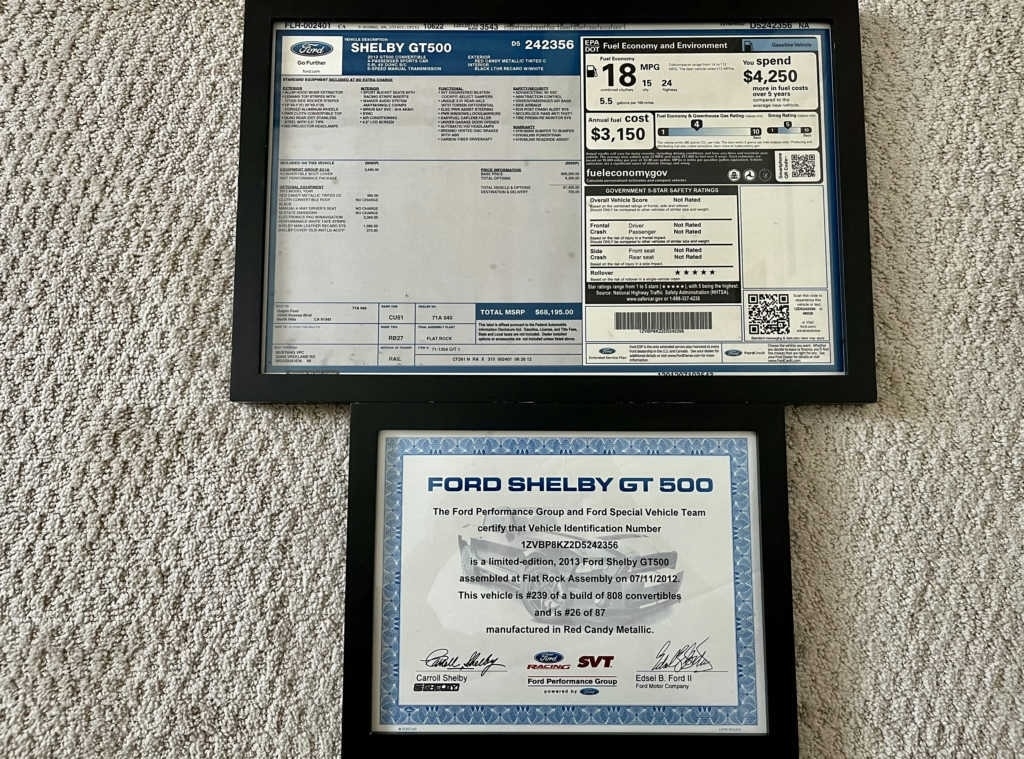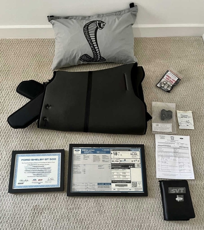 Package, boot cover, Shelby car cover, two sets of keys, framed SVT Certificate