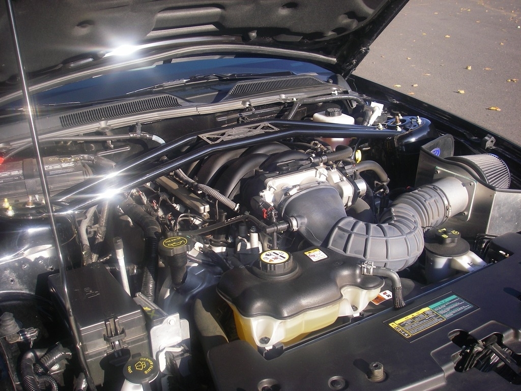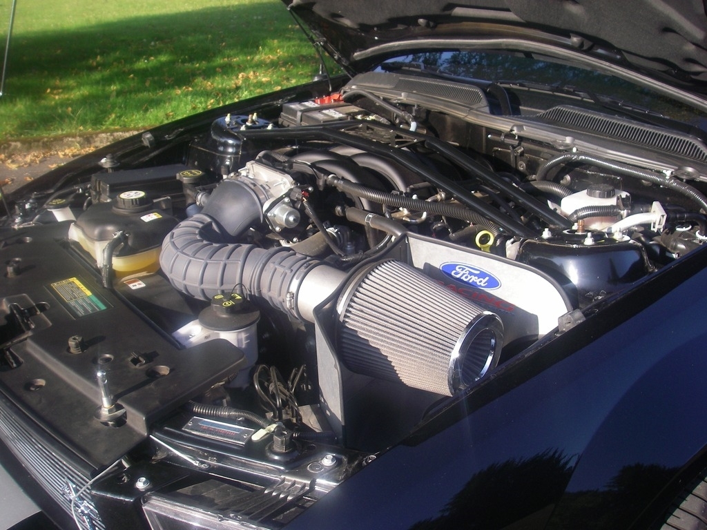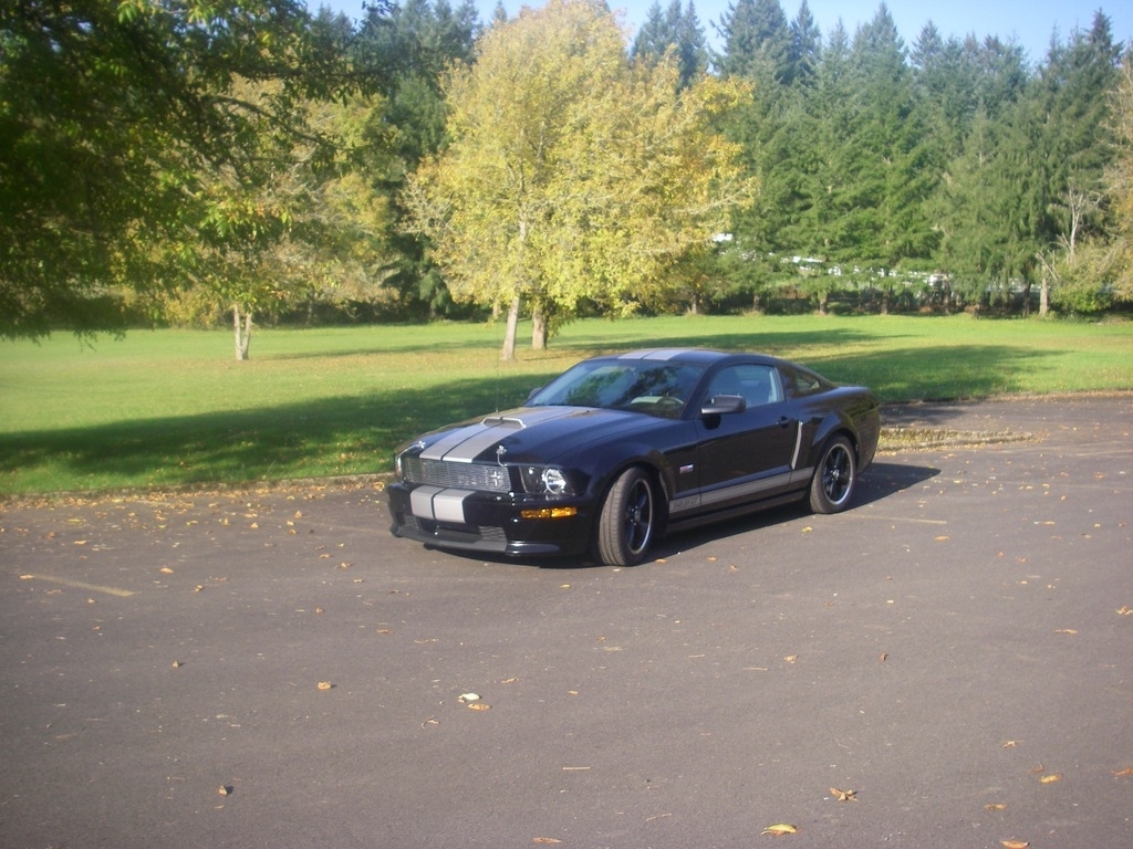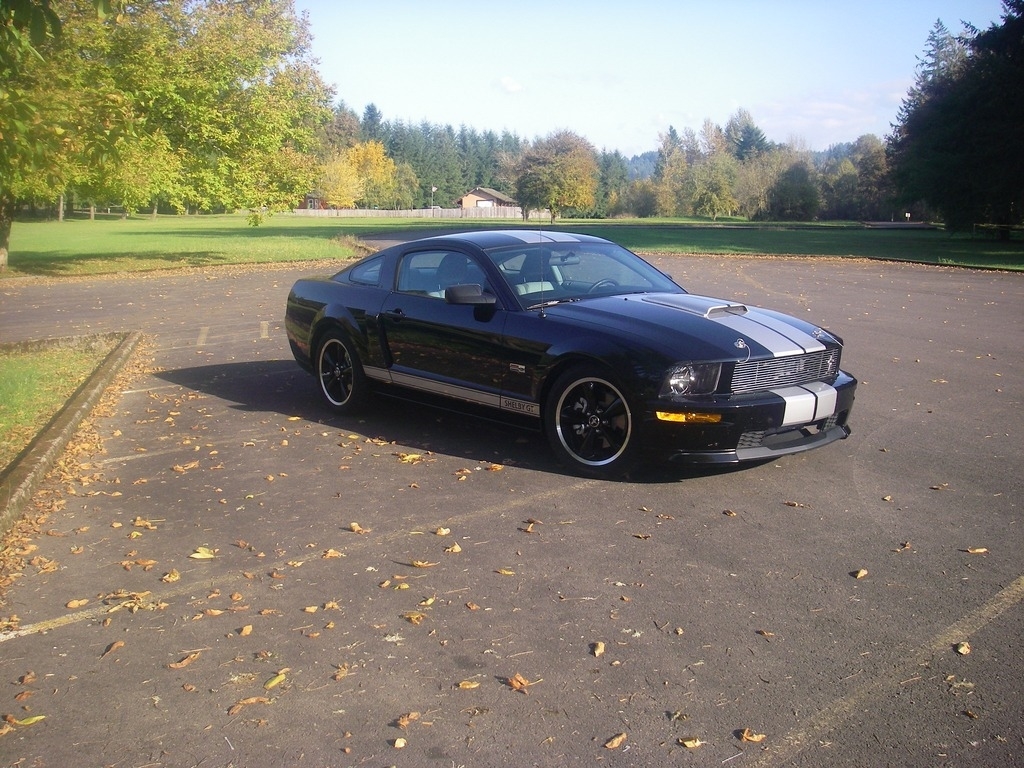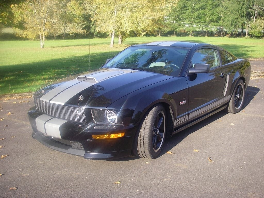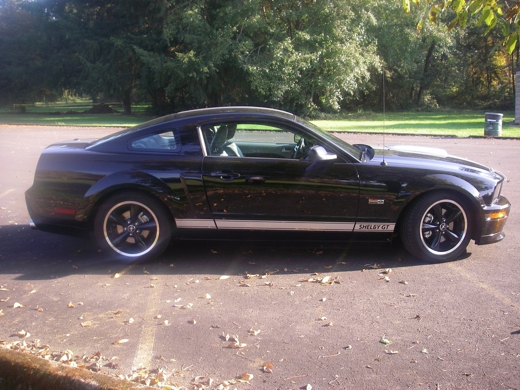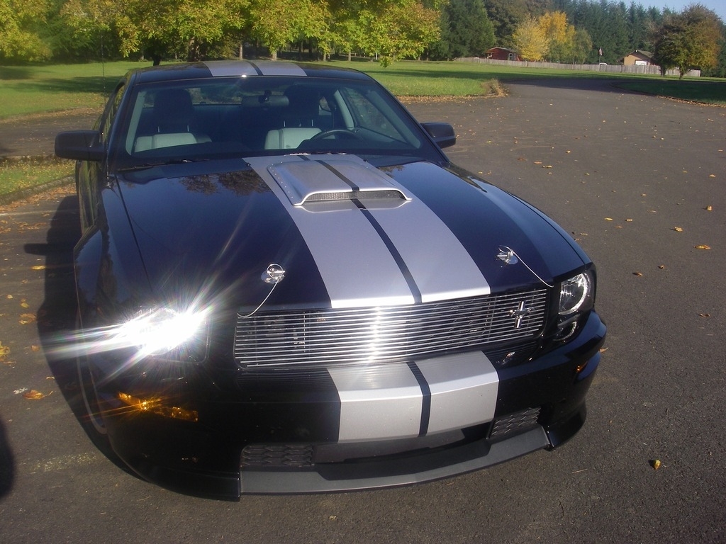 This 2007 Ford Mustang GT Deluxe is shown in a Black with Silver Racing Stripe exterior with a Light Graphite leather interior. It is powered by a 4.6L V8 Gas engine with 325 HP and is paired with a 5-speed Manual transmission. This is a non-smoking vehicle that has had no pets inside and has always been garage kept.