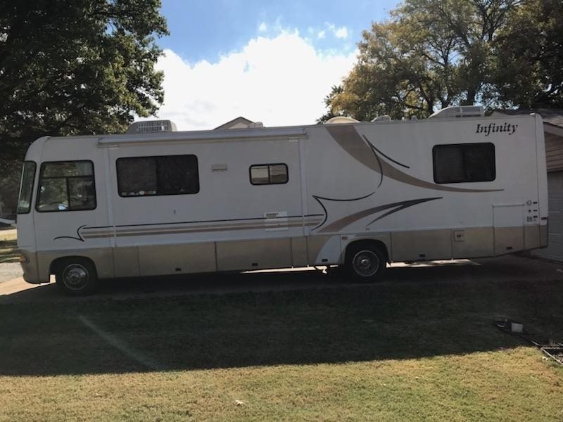 This 2000 Thor Infinity Motorhome is  powered by a Ford V-10 Gas Engine combined with a 4-speed Automatic Transmission  on a Ford Chassis, with 36,000 Miles. The overall length is 34 feet and  comes equipped with an Onan 5kW Generator, 1 Slide Out, 1 Awning, 2 A/C units  and plenty of room to sleep 4. This  is a non-pet/non-smoking RV and there have not been  any accidents.