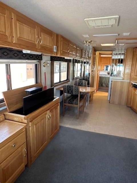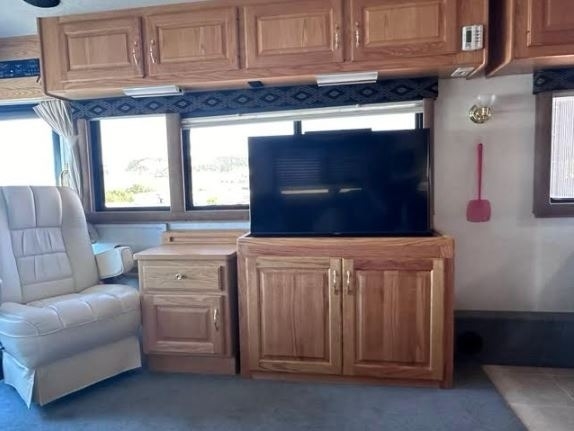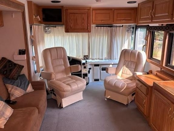 Upgrades and new items, Interior upgraded to a Southwest décor, the small TV replaced from above the front windshield to a large pop-up 50” TV cabinet in front of the couch, a 360-degree Winegard TV antenna replaced the crank up TV antenna on the roof, the coach has a Satellite antenna installed also. September 2023 installed six new tires, has two new D-8 Batteries for the Coach and new D-8 batteries for engine in 2021, replaced the inverter in June 2024 with a New Magnum 2000-Watt Inverter and has three years of Warranty. Replaced both the Extend and Retract Solenoids on the slide, Replaced the Hot Water Heater, Replaced the starting capacitors in the Air Conditioners, May 2024 replaced the cargo bay lift Hydraulic lift cylinders.
