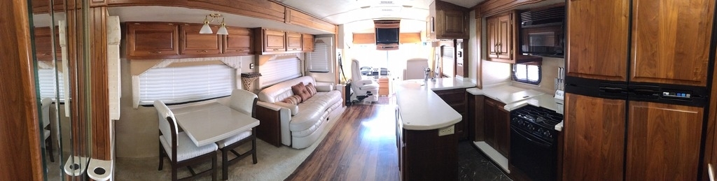 This 2003 American Coach American Tradition has an overall length is 40 feet and comes equipped a with 1 awning, 3 slide outs, 2 A/C unit and sleeps 6. It comes witha a Cummins 8.3L engine with an automatic transmission with 120,310 miles. This is a non-pet/non-smoking Class A RV and there has not been any accidents or water damage.