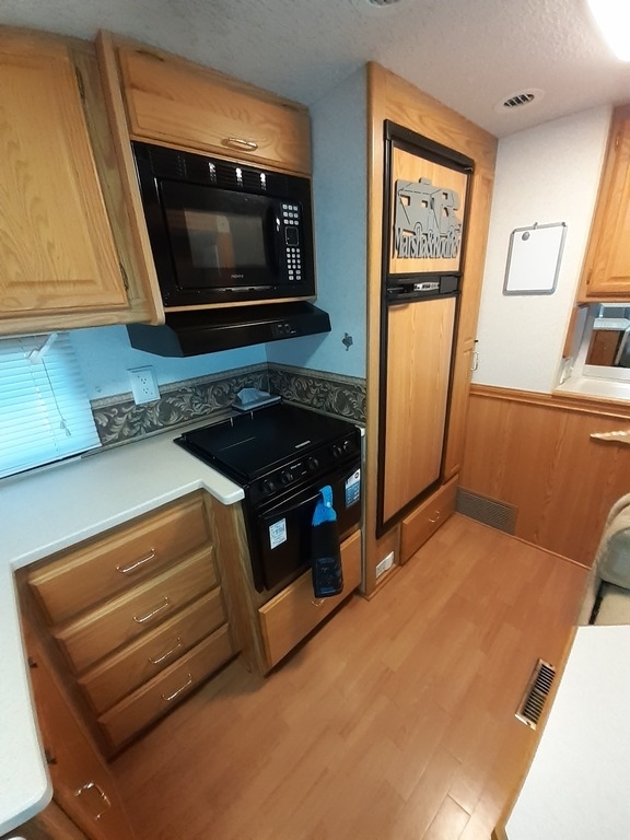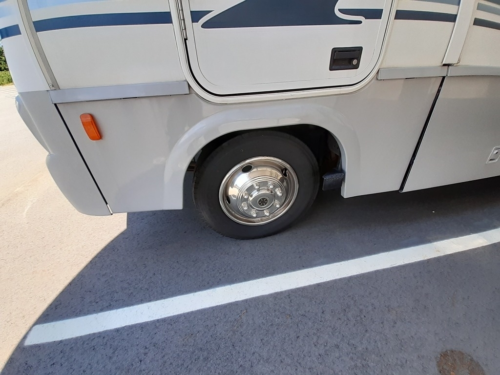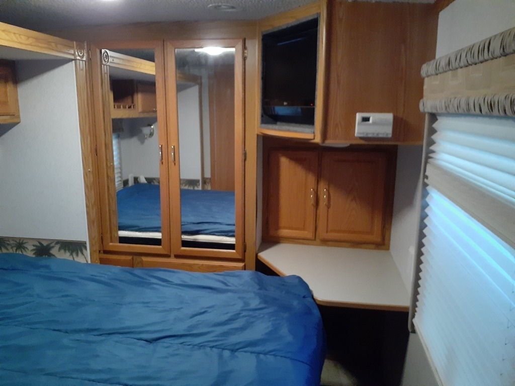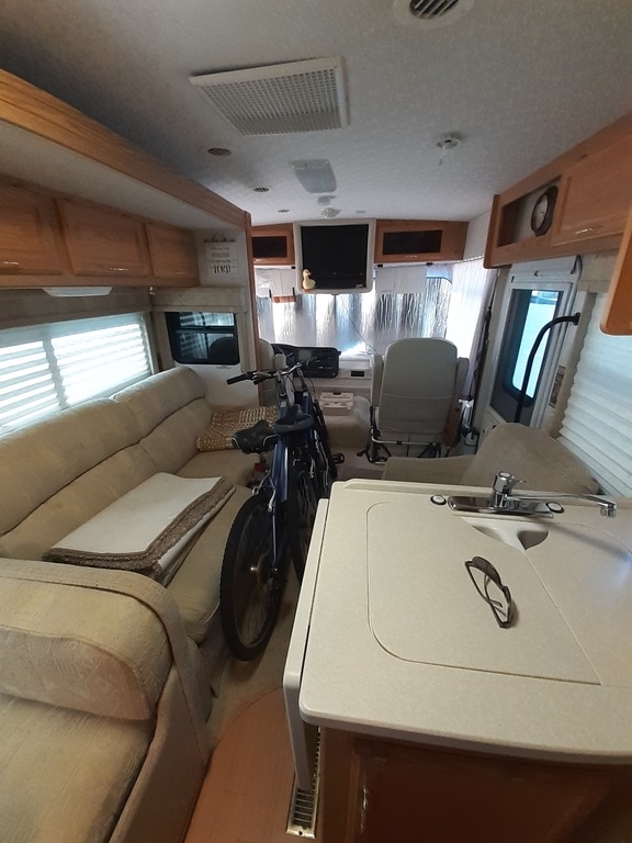 This 2003 Winnebago Brave is powered by a 6.8L Triton 310HP Engine combined with a 4-speed Automatic Transmission on a 2002 Ford Chassis, with only 42,500 Miles. The overall length is 36 feet and comes equipped with an Onan5000 Gas Generator, 2 Slide Outs, 1 Awning, 2 A/C units and plenty of room to sleep 4-6.