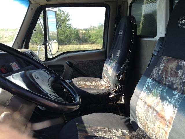 This Mechanic Truck is ready to start generating money for you. The crane is a Stellar 10,000 pound wireless remote crane and there is a Stellar hydraulic air compressor. There is a strong Cat C-7 engine paired with a 5 Speed manual transmission and 270 horsepower. There is 10,000 on the front axle and 12,500 on the rear axle. Locking rear differential on truck. There is 60% rubber on the tires. There are many great features on this truck including: