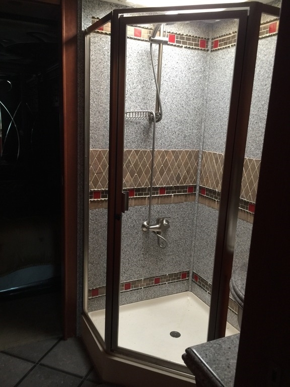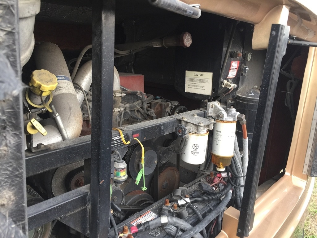 overall length is 45 feet and comes equipped with an Onan Diesel generator, has