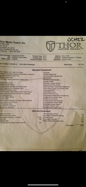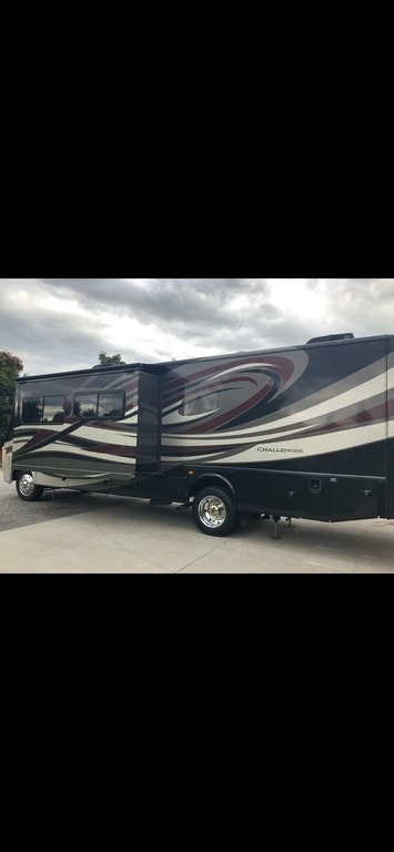This 2012 Thor Motor Coach Challenger Motorhome is powered by a Triton V10 Engine on a Ford F-Series Super Duty Chassis with 362Hp paired with a TorqueShift 5 Speed Automatic Transmission with 27,000 Miles. Its Overall Length is 34ft and comes Equipped with a 5500 Onan Generator, 2 Slide Outs, 1 Awning, 2 A/C Units and Plenty of Room to Sleep 8. This Unit has been Smoke-Free, Pet-Friendly, and has No Water Damage.