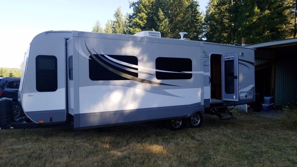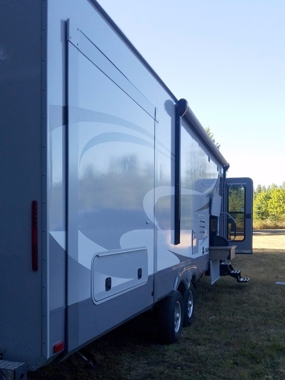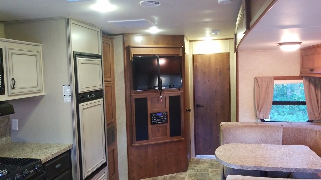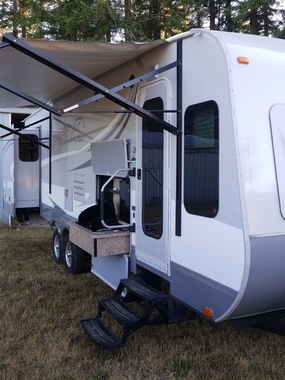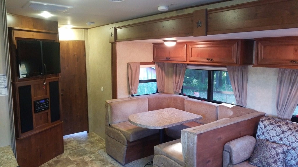 This 29-foot Open Range Travel Trailer comes fully equipped with 2 power retractable slide outs, 1 power retractable awning, A/C and sleeps 6-8.