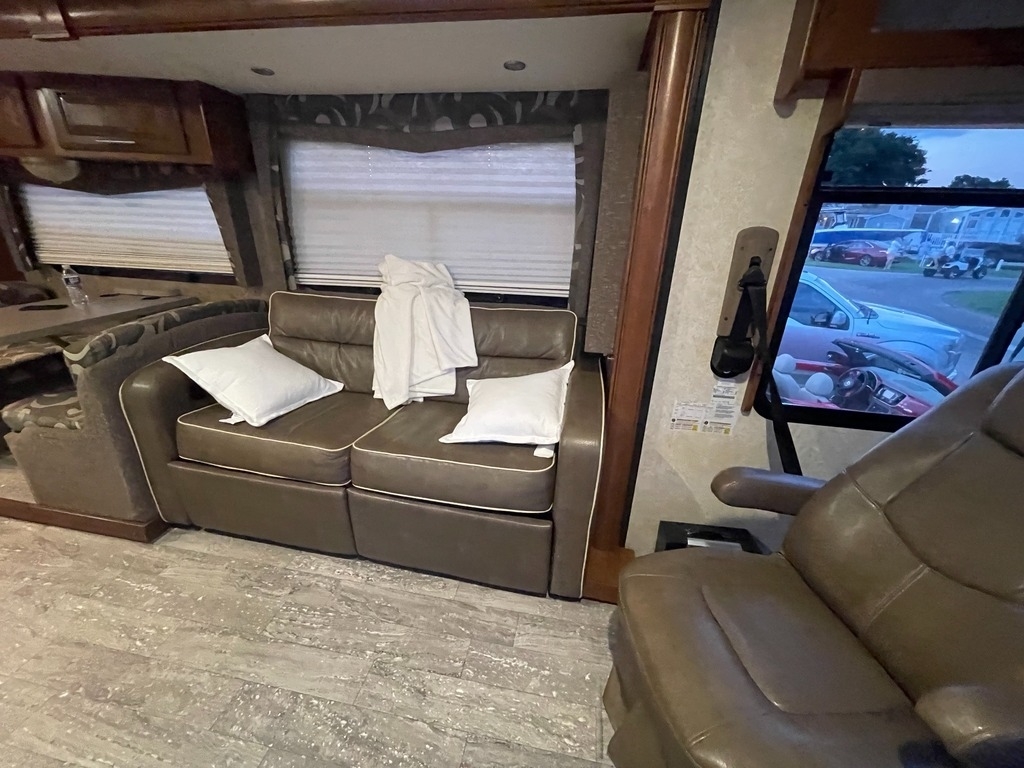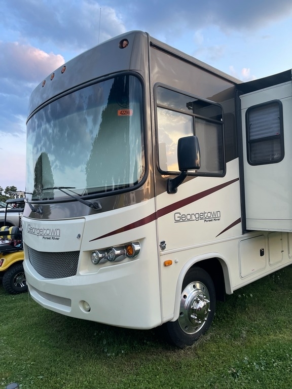 This 2015 Forest River Georgetown is powered by a Triton V10 362HP Engine combined with a 5-speed TorqShift Automatic Transmission on a Ford F-Series Super Duty Chassis, with 38,000 Miles. The overall length is 37 feet and comes equipped with an Onan 5.5kW Generator, 3 Slide Outs, 1 Power Awning, 2 A/C units and plenty of room to sleep 7 comfortably.