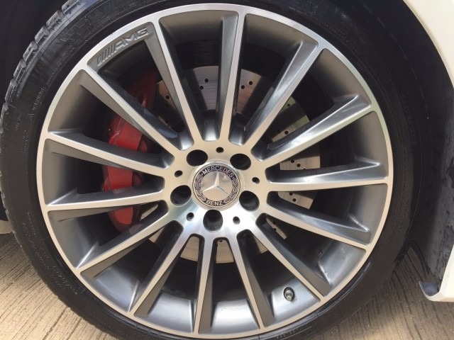 P2|NAV|PARK ASST|BLIND SPOT|AMG WLS. Designo White Metallic exterior with Saddle Brown interior, a highly desirable and fairly rare combination. 4.6L, Bi-Turbo V8 Engine, 7 speed transmission with 402 HP. Premium AMG wheels with red calipers. Dark window tinting. The car has just 14,000 miles. Heated and air conditioned seats. Keyless entry, keyless go. Rear