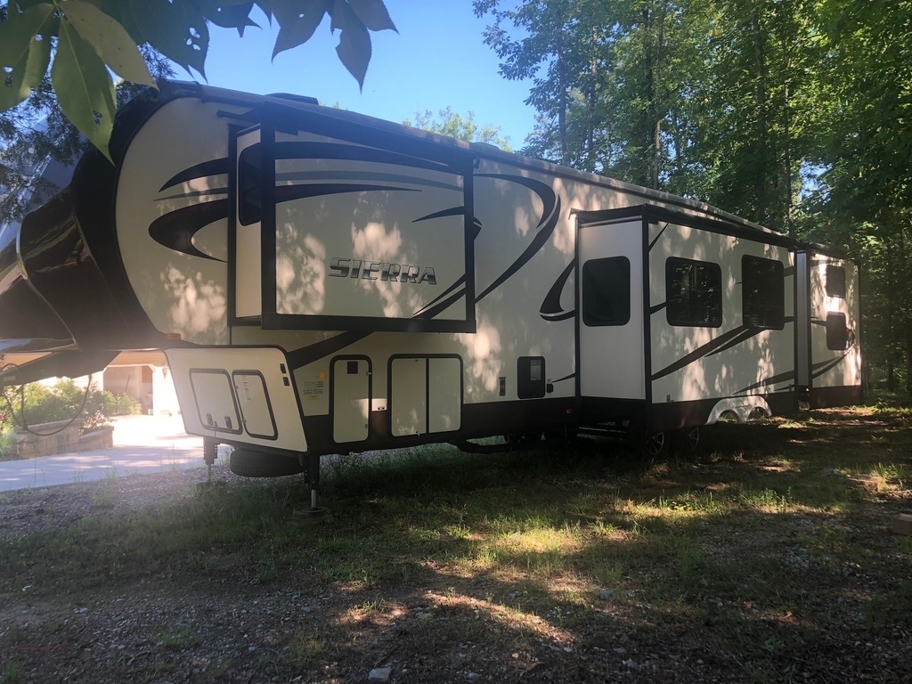 This 2016 Forest River Sierra has an Overall Length of 41 Feet, and Comes Equipped with 4 Slide Outs, 4 Power Awning, 2 A/C Units, and Plenty of Room to Sleep 11. This Fifth Wheel is Non-Pet/Non-Smoking and has not had any Accidents or Water Damage.