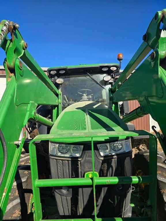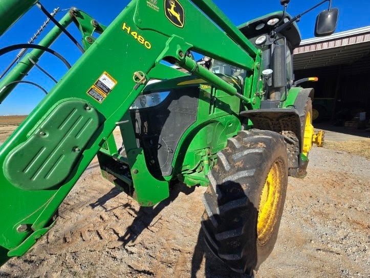 Deere H480 loader, making it a versatile and capable setup. The tractor
