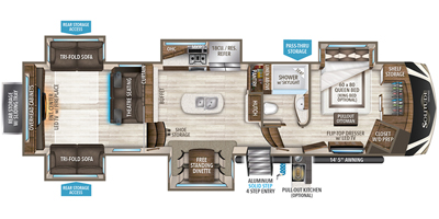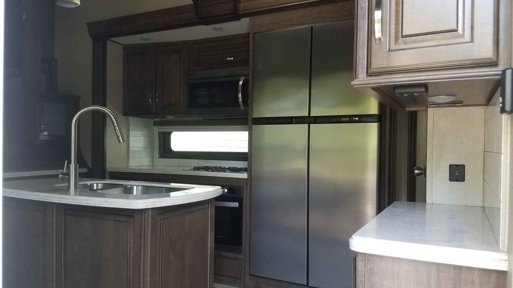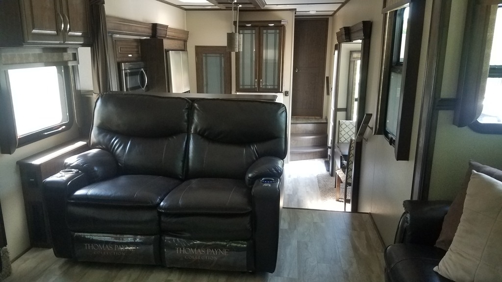 This 2018 Grand Design Solitude has an Overall Length of 41 Feet and Comes Equipped with 5 Slide Outs, 1 Power Awning, 2 A/C Units, and Plenty of Room to Sleep 6.
