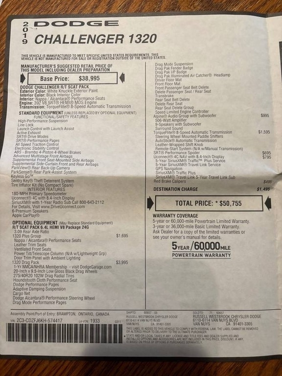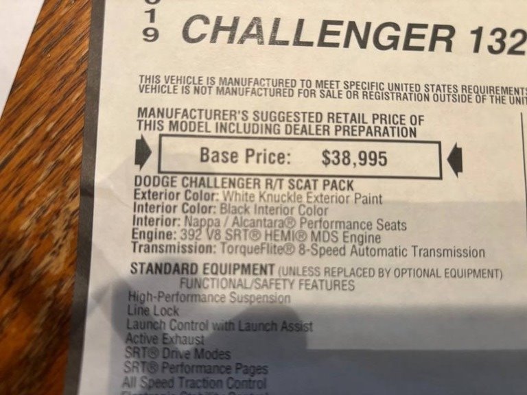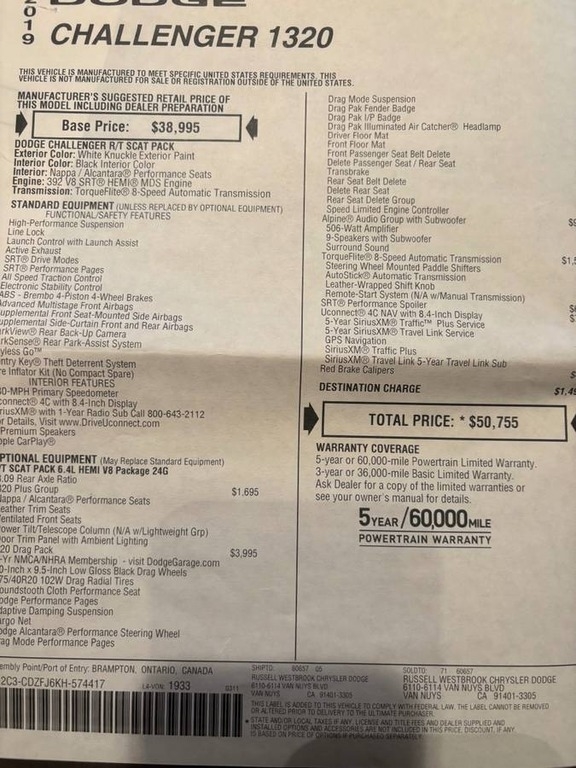 “For sale is a 2019 Dodge Challenger R/T Scat Pack 1320 in showroom