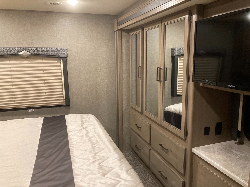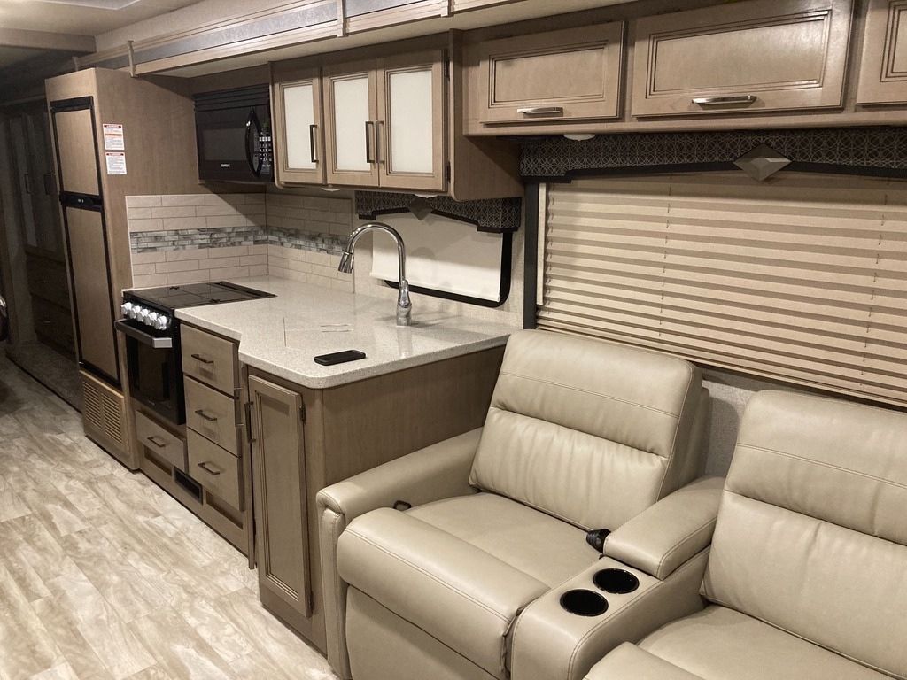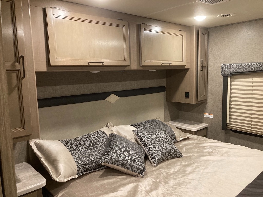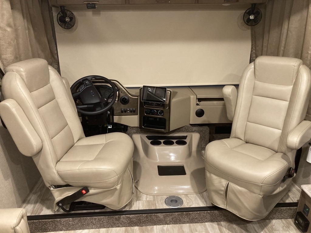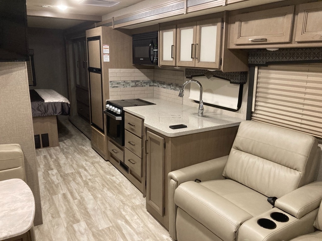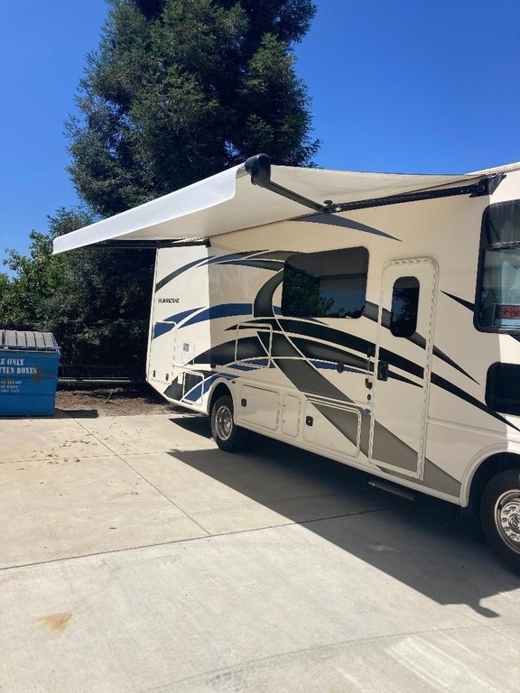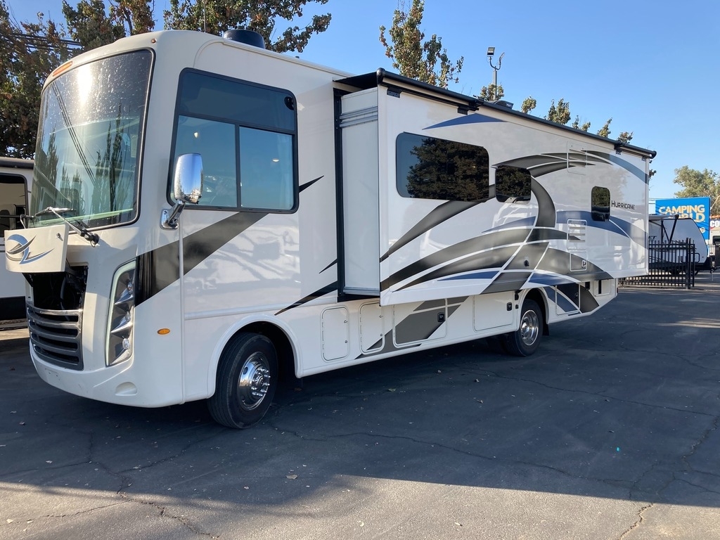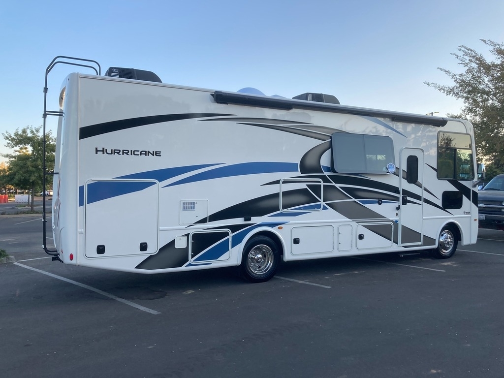 This 2021 Thor Motor Coach Hurricane 29M Class A Motorhome is 30.75 feet long and comes equipped with a slide out, a power patio awning, two air conditioning units, and can sleep six people comfortably. This coach is powered by a Triton V8 gasoline engine and sits on a Ford F53 chassis. Original owner. Transferable extended warranty.